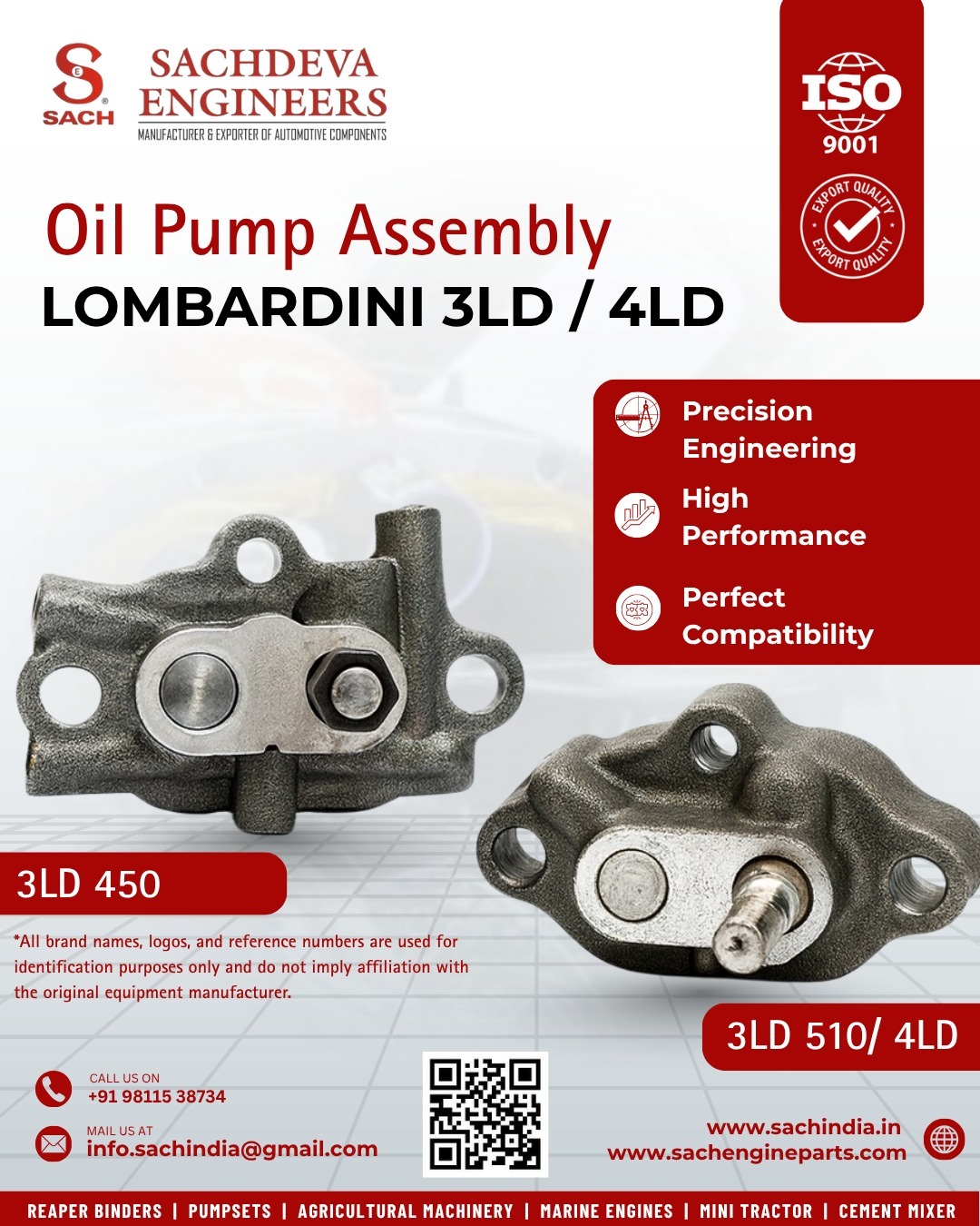 Alongside oil pumps, Sachdeva Engineers also supply a complete range of Lombardini spare parts. Our catalog includes pistons, connecting rods, crankshaft supports, rocker arm covers, cylinders, and fuel filter assemblies. Moreover, all products are manufactured to match OEM specifications and exported worldwide with consistent quality.